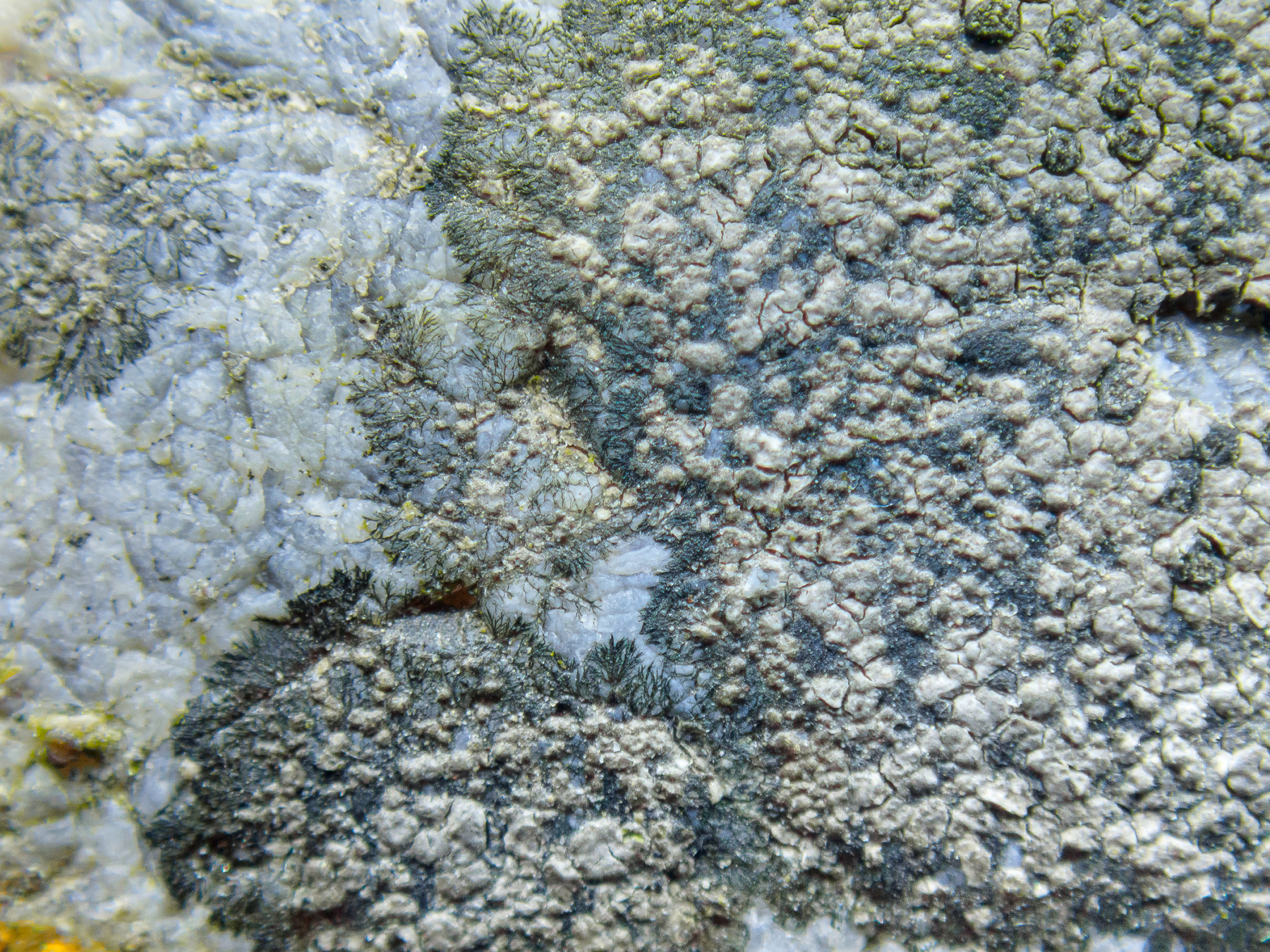 R. reductum requires a bit of care to identify, as some other Rhizocarpon species look similar. If you’ve encountered a ‘white’ rather than a ‘yellow’ Rhizocarpon, and you think it might be R. reductum, you should first be sure of the substrate and location. Your lichen isn’t R. reductum if it’s on: